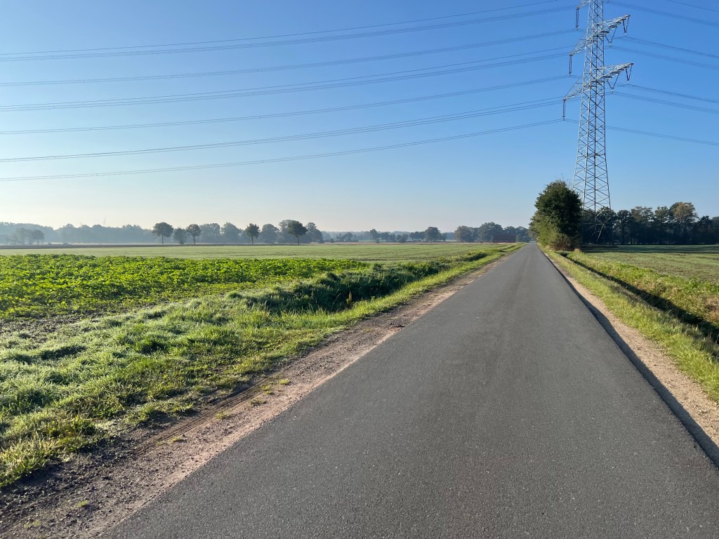 De route bracht me eerst dwars door Bad Bentheim, bijna tot aan de burcht. Een klimmetje en ook nog eens over kasseien. Dat kon wat gaan worden. De rest van de route bleek vooral over rustige weggetje, mooie fietswegen, fietspaden en abominabele wandel- fietspad combinaties te lopen. Het laatste was vervelend. Ik denk dat als je de omgeving beter kent deze kunt ontlopen of beter weet of je misschien wel op de weg kunt rijden. Wist ik natuurlijk niet, dus zo hobbelde en slingerde ik over paden die je als wandelaar zelfs nog liever zou ontlopen. Maar andere stukken waren echt schitterend.