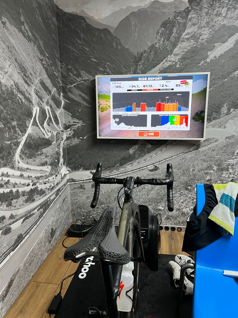 Gelukkig hoef je om het cijfer te bepalen niet een uur die inspanning te leveren. Met een 20 minuten test kun je door 97% of 95% te nemen van het getal goed bepalen wat jouw FTP is. Lijkt mee te vallen zo’n inspanning van 20 minuten, maar het is verschrikkelijk. Het is dan ook niet iets waar ik naar uit keek en ik moest wel. De laatste keer was in april geweest.
